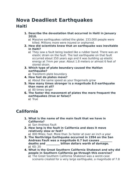 Read Online Nova Deadliest Earthquakes Answer Key For Questions Doc